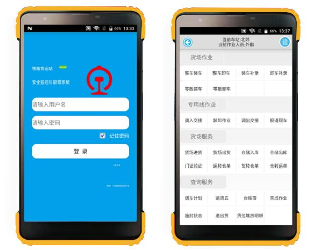 The rail freight handheld is a special handheld mobile terminal customized by the freight subject group to the freight station, which can interact with the "Freight Station Security Monitoring and Management System" for information. The system integrates RFID module, QR code module, voice intercom function, handheld management platform, etc. Freight handhelds receive the operation plan issued by the freight station system for operation through 4G network (security authentication), and upload the image data such as photo and video of the operation process and problematic vehicles to the freight station system to realize mobile office.